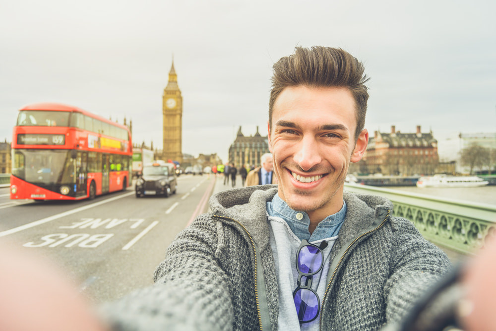 Smiling,Guy,Take,Selfie,Photo,During,Travel,In,London,,England.