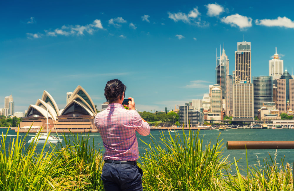 Tourist,Photographing,Sydney,Skyline,,New,South,Wales,,Australia.